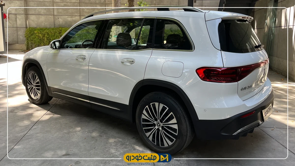 در نمای عقب، طراحی ساده و در عین حال شیک این خودرو با خطوط صاف و چراغهای افقی و کشیده، حس حرکت و قدرت را منتقل میکند. وجود لوگوی EQB 260 در قسمت عقب نشاندهنده اصالت این مدل است.